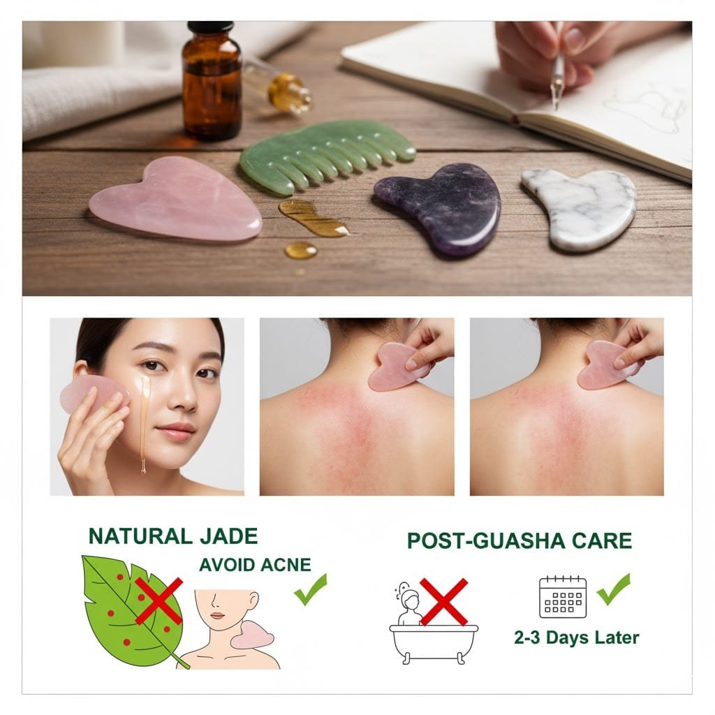 We recommend you choose natural crystal, jade and other stones of the gua sha scraper. Do not choose plastic and other materials of the gua sha scraper board.